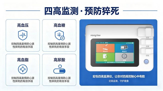 宏怡四高监测仪,预防心源性猝死从“管好四高”开始