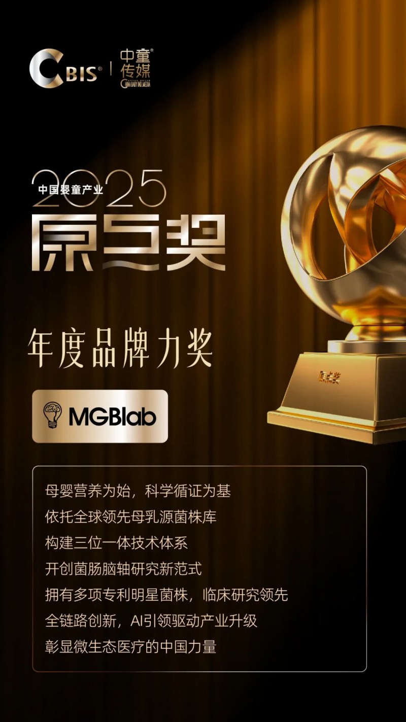 MGBlab荣膺2025 CBIS中国婴童产业原点奖“年度品牌力奖”,以科研引领微生态营养新未来