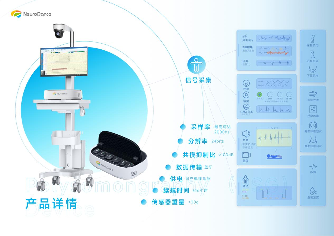 据悉,神舞科技长期专注于神经调控与脑机接口技术的临床转化。ND1000多导睡眠监测仪作为该领域的核心诊断工具,严格遵循美国睡眠医学会(AASM)最新判读标准,其数据精准度与抗干扰能力已在多家大型三甲医院临床验证中得到认可。该设备不仅适用于整夜睡眠呼吸暂停(OSA)诊断与压力滴定,亦能有效支持发作性睡病、异态睡眠等复杂睡眠疾病的鉴别诊断。