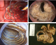 而金属支架的取出方式则更加多样。以国内外曾使用的部分金属支架为例:部分裸金属弹簧支架——采用“低温变形”原理,即在注入5℃冰水后,镍钛记忆合金会暂时软化并拉伸成一根细丝,随后通过导丝或导引鞘顺行或逆行取出。覆膜金属支架——则需要通过专用的回收器械,将支架从一端塌陷后拉入输送鞘中完成回收。
