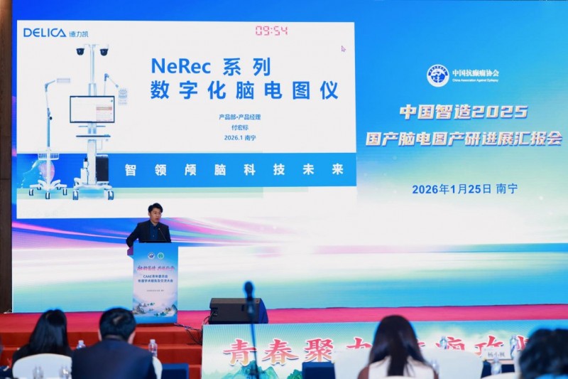 在大会重磅环节——“中国智造2025—国产脑电图产研进展汇报会”中,德力凯凭借深厚的技术积淀与创新成果成功入选,受邀展示国产脑电图仪的研发突破。会上,德力凯提供的NeRec-40脑电图仪全程参与脑电信号持续记录工作,其稳定的长时程监测性能、清晰的信号呈现效果,以及对临床需求的深度适配能力,完美契合汇报会对设备专业性、可靠性的严苛要求,最终凭借亮眼表现斩获专家团一致认可。该系列产品以“高精度信号采集+AI智能赋能”为核心优势,不仅实现了脑电信号的精准捕获与稳定传输,更融入AI降噪与自动分析算法,大幅提升了临床诊疗与科研探索的效率,为脑功能评估提供了更精准、便捷的技术支撑。